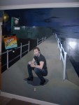 One Bruce fan lead me to another and then another and before you recite the Boss’s lineup on the Greetings Album, I was referred to a fan who has probably the ultimate Bruce man cave. The photo above is a composite because, being a cave, the lighting was a spur of the moment hazard and the one panoramic shot I took was fuzzy on one end and sharp on the other. But understand that Bruce, pictured there, is nearly life size and the mural takes an entire 25-foot wall. Note the door handle- they left the door ajar so you could see the white line of the frame near the Ferris wheel. What you can’t see is the many 3-D effects, such as Bruce’s diamond stud ear ring.